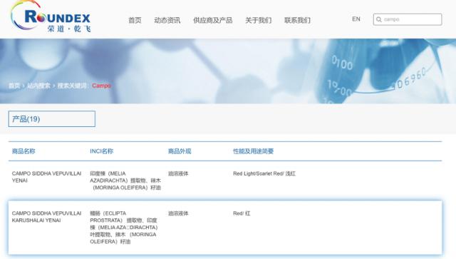 Campo 官网信息显示,该公司专注于纯天然植物基功能性活性化妆品原料研发,经销商遍及中国、印尼、韩国、美国、意大利、加拿大等国家。