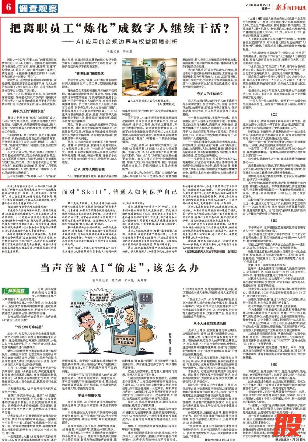 训练AI分身,数据从何而来、可以使用到何种程度?如何强化知识产权保护、明确技术伦理边界,让AI发展的成果惠及更多劳动者?新华每日电讯记者多方采访,深入剖析该现象。